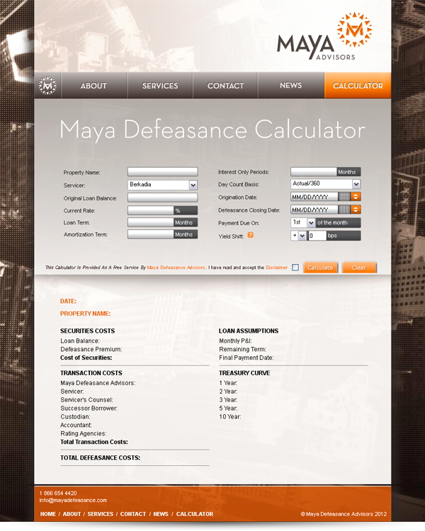The most challenging aspect was The Defeasance Calculator. I worked successfully with a web programmer to integrate a calculator into the front-end design.